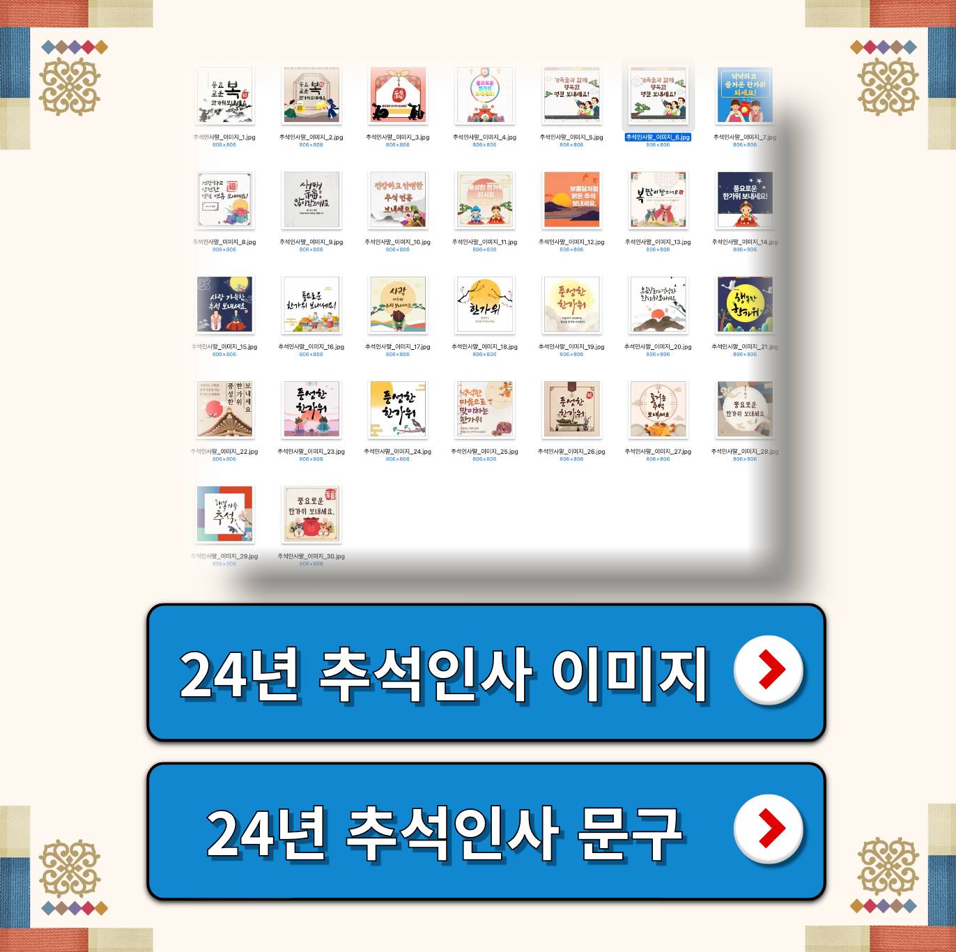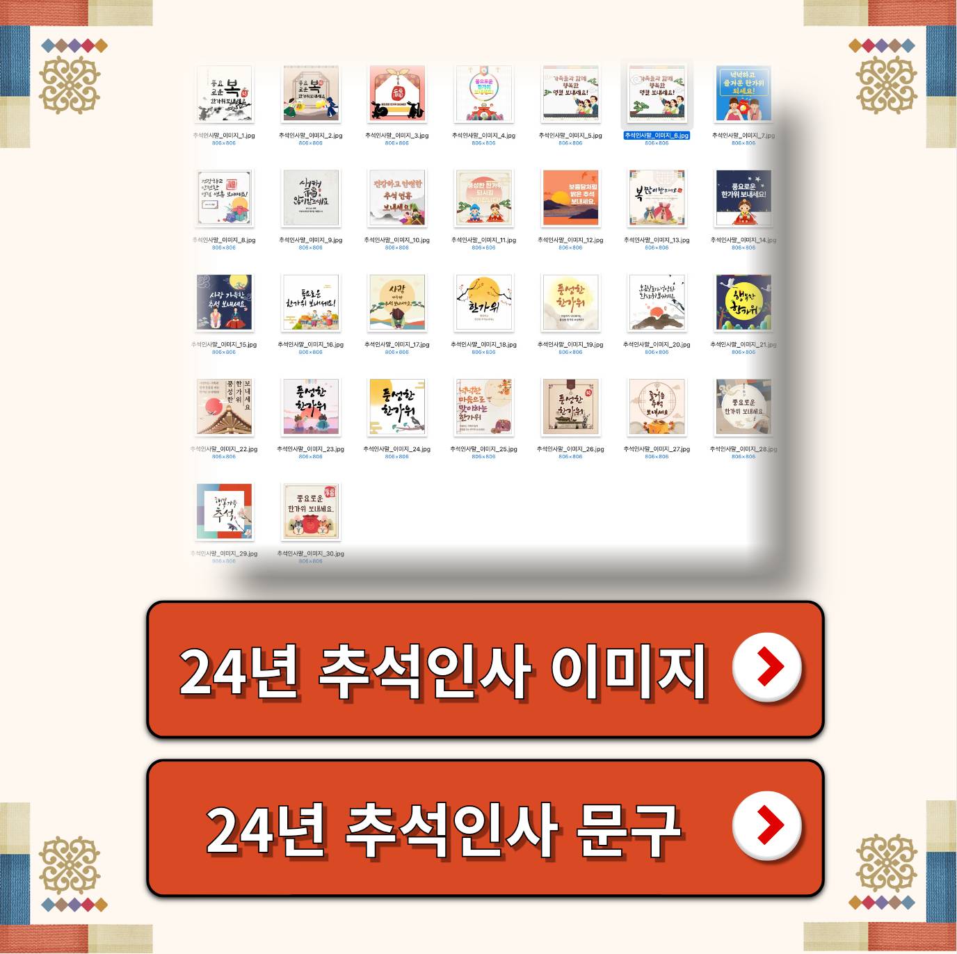 지금 포스팅은 23년 무료이미지 10장을 포함하고 있으며, 24년도 최신 내용을 무료이미지 50장 + 상황별 인사말 160개로 재구성 했으니 받아가세요.